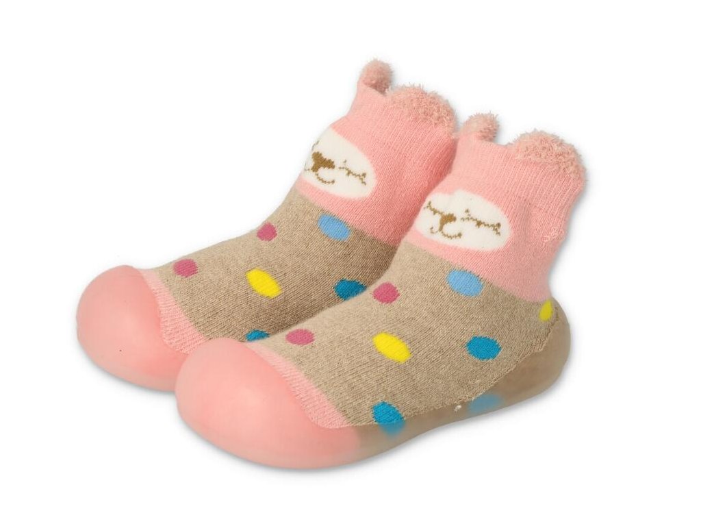 Befado capáčky/ponožkoboty růžovo-béžová kočička